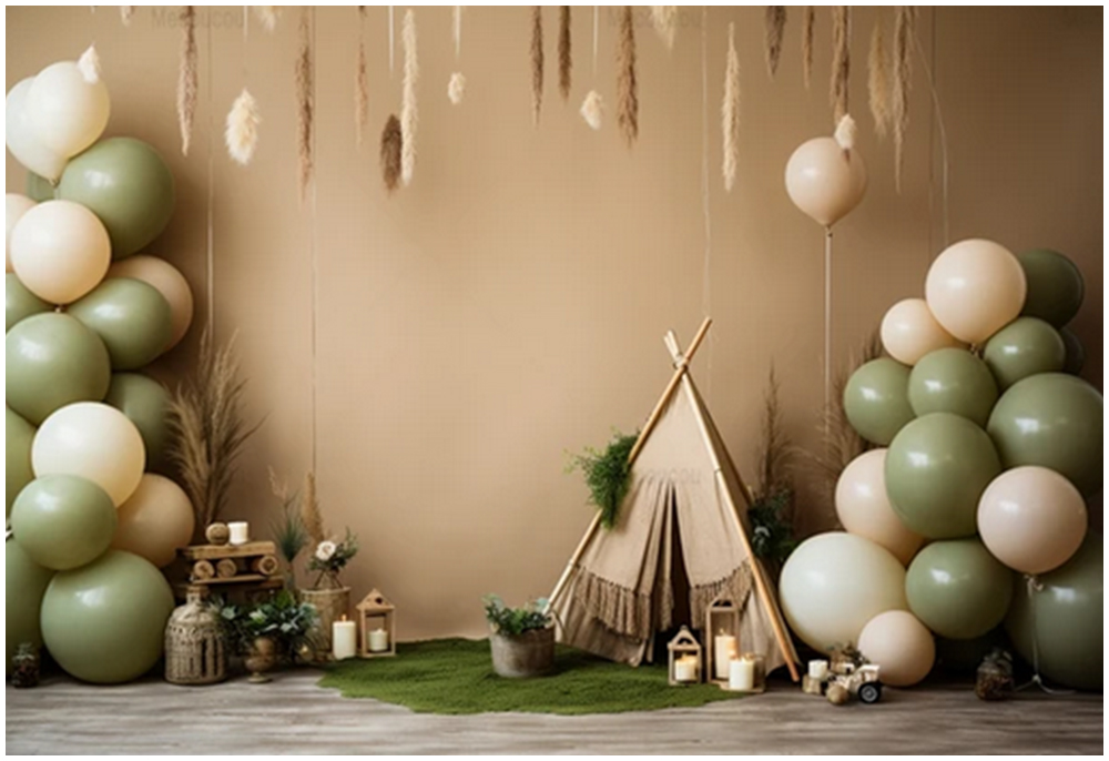 Chaque décor est ensuite soigneusement pensé et agrémenté de différents éléments tels que des accessoires, des fleurs, des ballons et de petits détails décoratifs. Tout est harmonisé afin de créer une atmosphère douce, esthétique et cohérente, spécialement adaptée à l’univers du smash the cake.